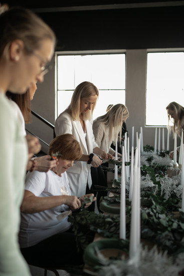 Po jemném, ale účinném cvičení následoval kreativní workshop, během kterého si každá z účastnic vytvořila svůj vlastní adventní věnec. Věnce vznikaly z trvanlivých materiálů a stabilizovaných květin, které si zachovávají svou krásu po celé sváteční období a budou ženám tento společný okamžik připomínat ještě dlouho po Vánocích.